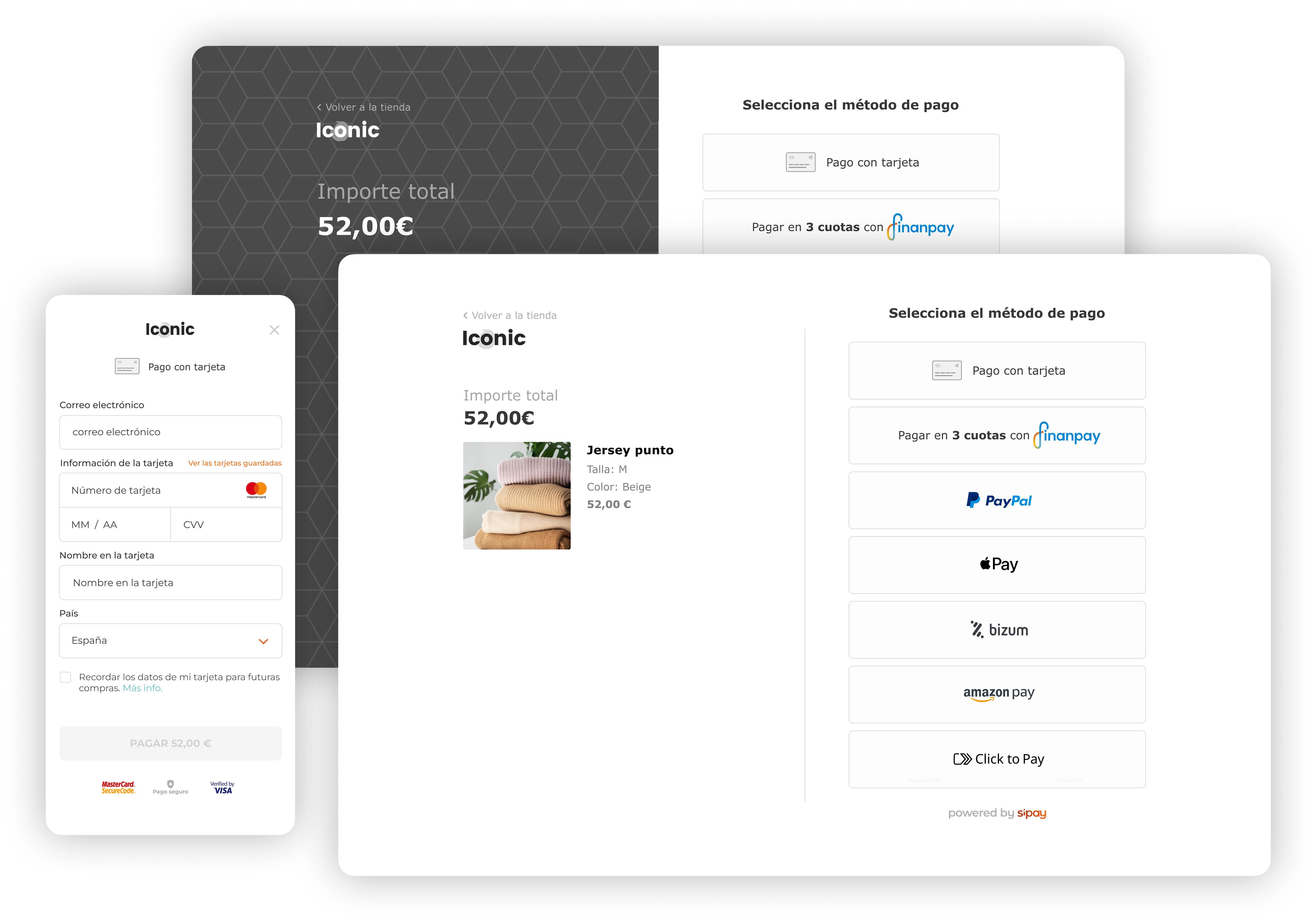• API: es el nivel más básico de integración y sobre el que se implementan todos los anteriores. Está disponible para los Comercios que necesitan un nivel de personalización máximo.